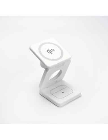 Effektiv 3-1 trådløs oplader med Qi2-teknologi til iPhone, AirPods, Apple Watch og Qi-kompatible Android-enheder. Hurtig opladning, magnetisk placering og elegant, kompakt design – perfekt til både hjemmet og på farten.